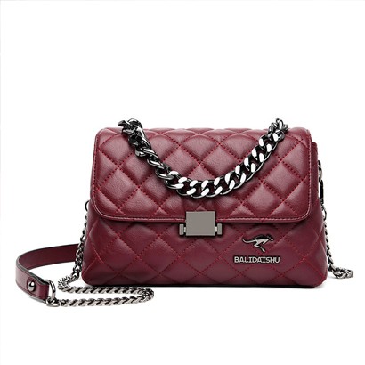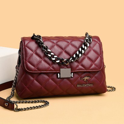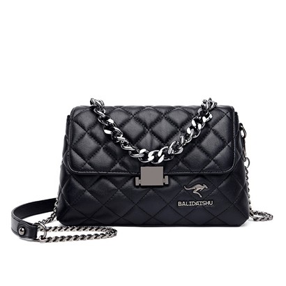 菱格鏈條軟皮斜挎單肩包
