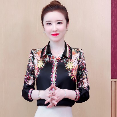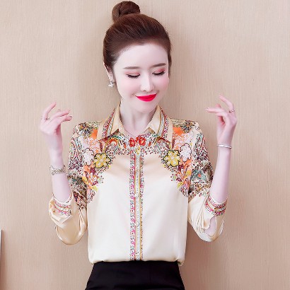 氣質設計感印花雪紡襯衫