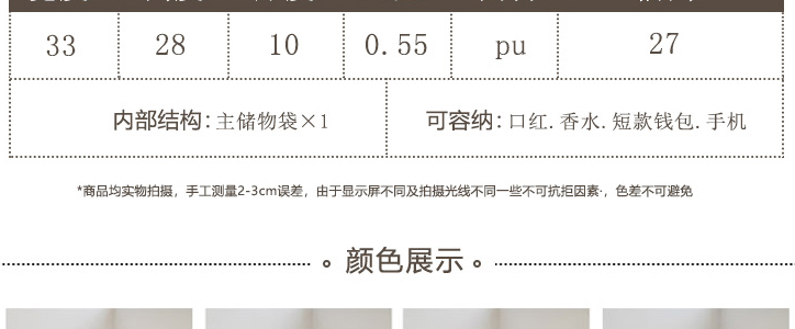 包包品質還不錯,空間大小合適,風格清秀,手提袋子也很光滑,也不易髒,總之感覺很好