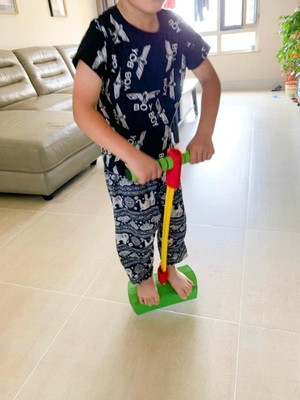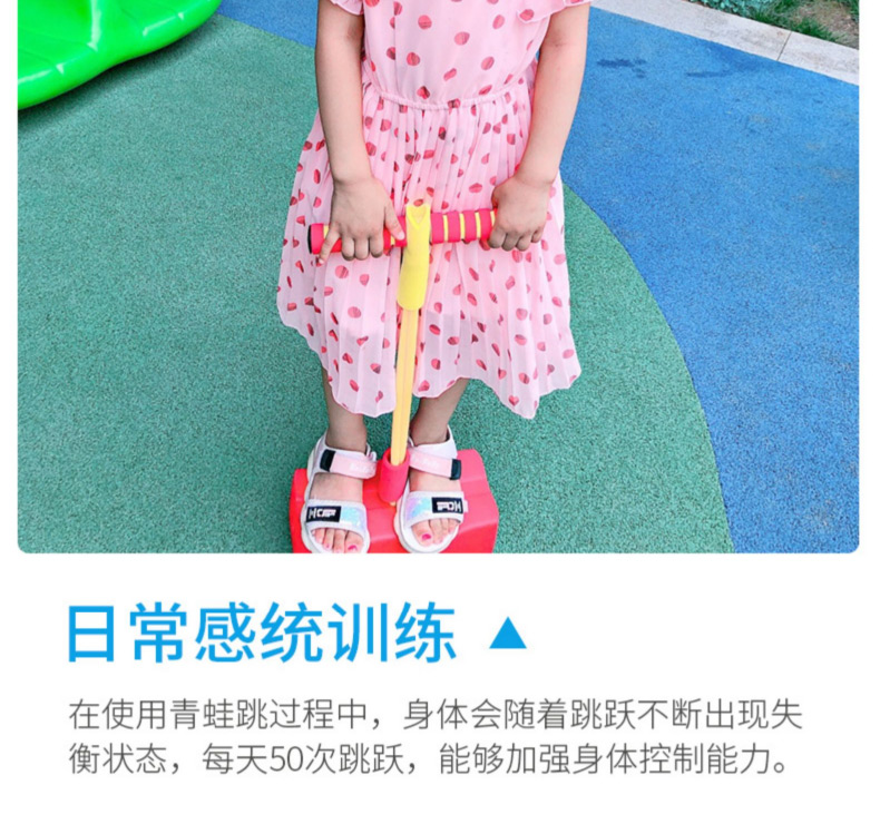 這個青蛙跳的設計真的很細心了,孩子腳踩的地方是海綿的材質,在跳的時候還能對孩子的腳踝起到緩衝的保護作用