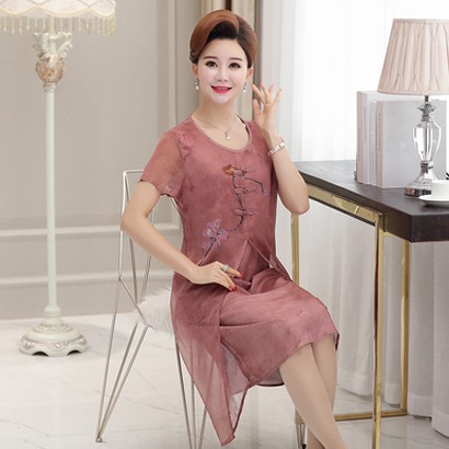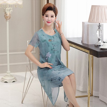 圓領雙層雪紡連衣裙