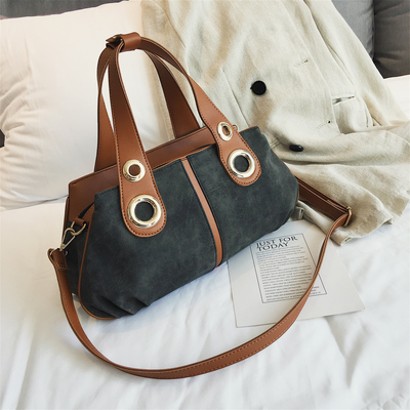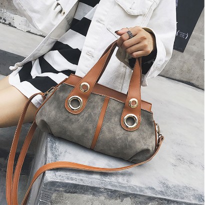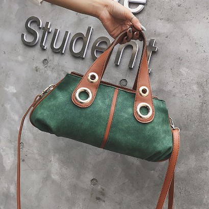 撞色磨砂單肩手提包