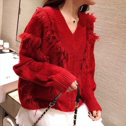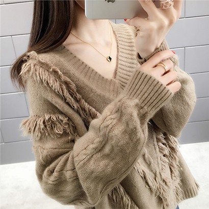 慵懶流蘇v領針織衫