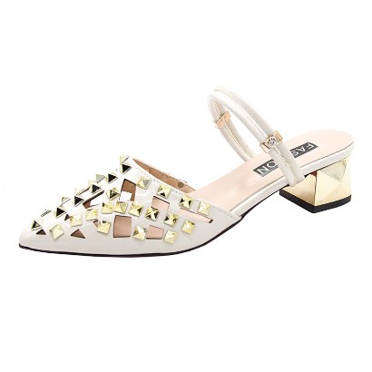 鉚釘中跟女鞋