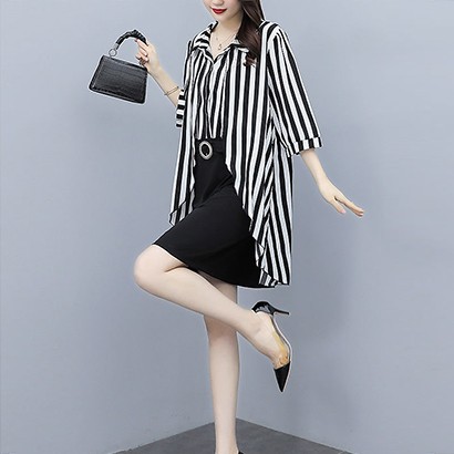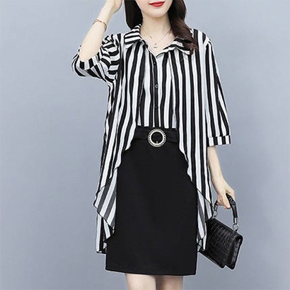 拼接假兩件連衣裙