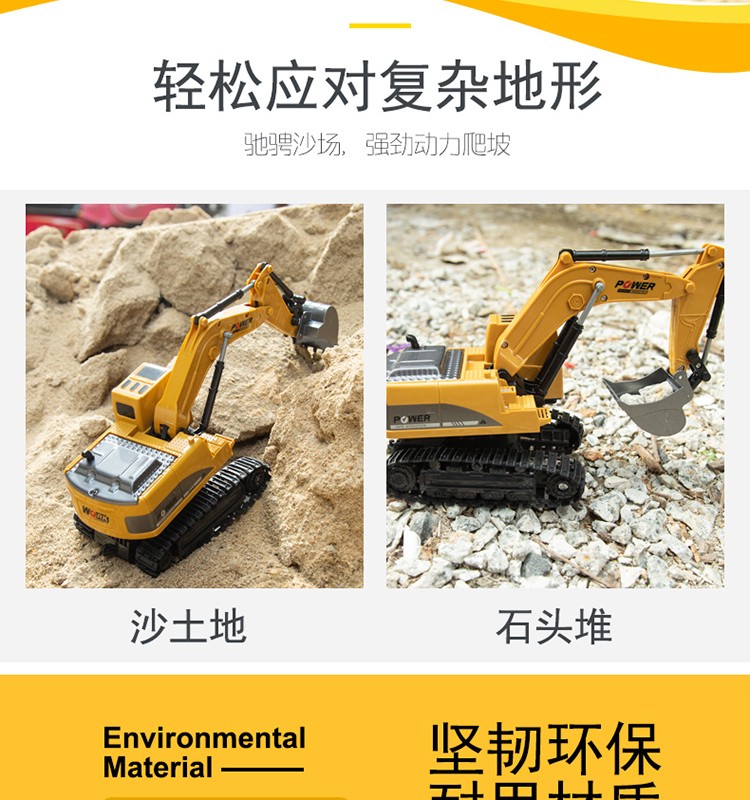 挖掘機不錯,力量大,所有動作跟真挖掘機一樣,挖鬆散的沙子是沒問題的