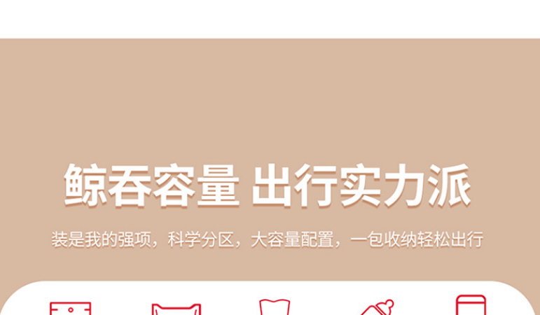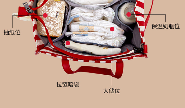 容量非常大,出門背著非常方便,帶著孩子出門東西多,這個可以很好的分類,小口袋挺多的