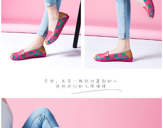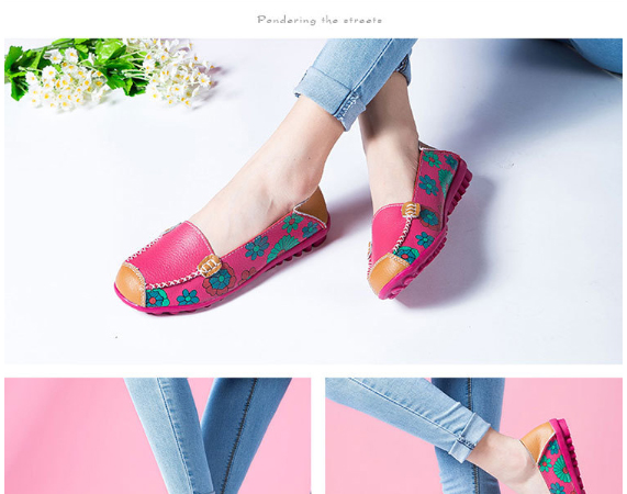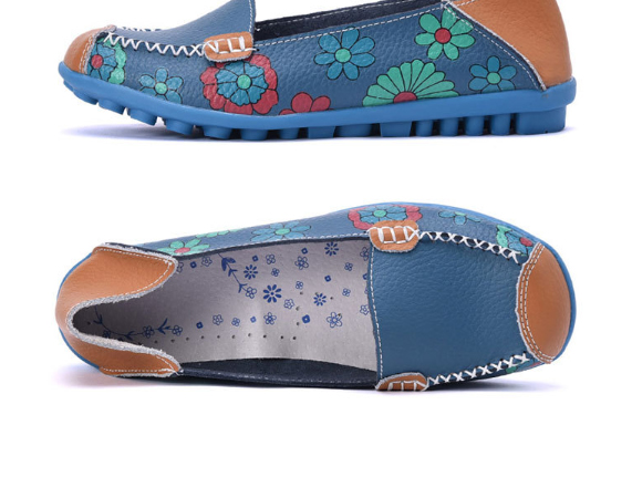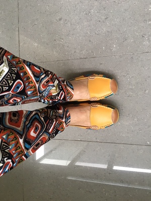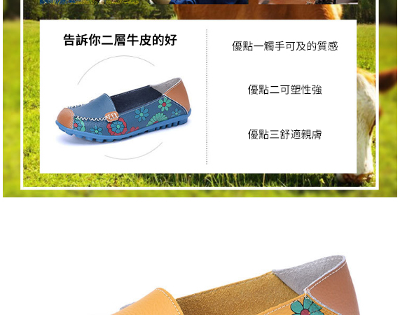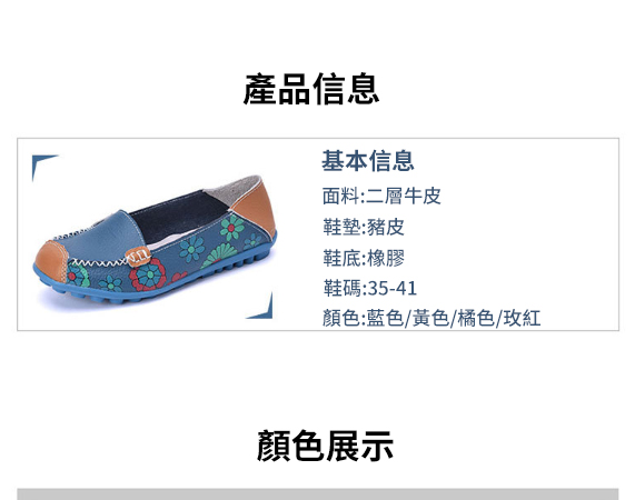 鞋底是豬皮材質,鞋面採用二層牛皮,印花也漂亮,腳感舒適,一天到晚走路也不夾腳,總之物美價廉