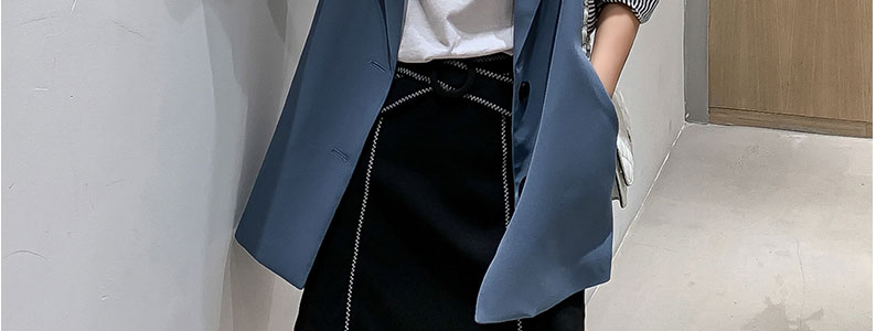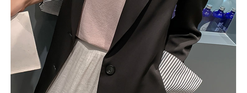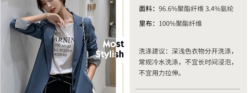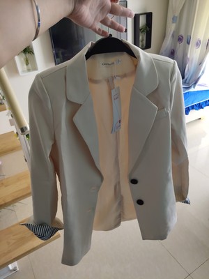 寶貝還不錯,裡面有內襯哦春秋款是今年比較流行的版型。是西裝面料。