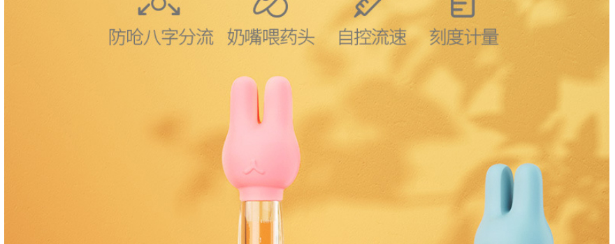 防呛八字分流 ,奶嘴喂药头, 自控流速 ,刻度计量
