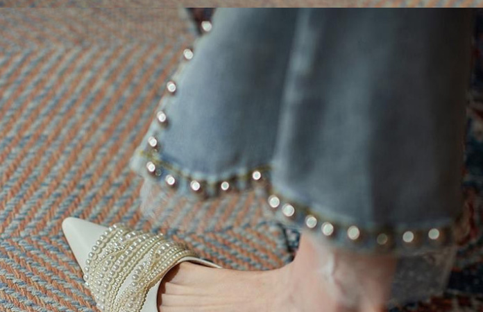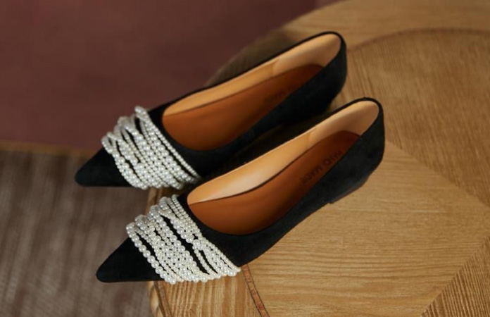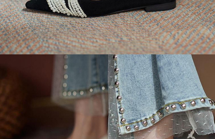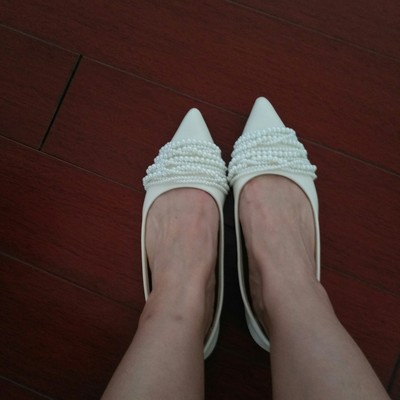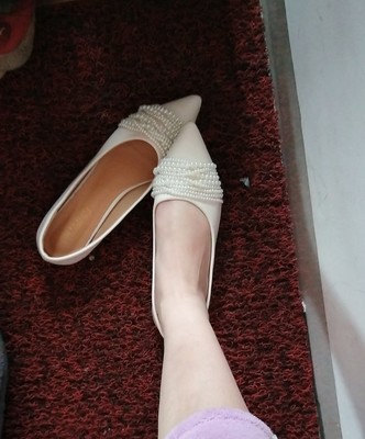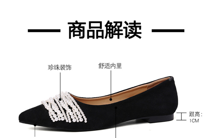 尖頭珍珠軟底單鞋,時尚法式尖頭軟底珍珠女鞋,時尚優雅