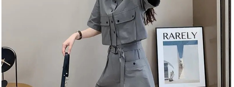 這個兩件套時尚裝做工很細緻,質量也很好,一點線頭也沒有。