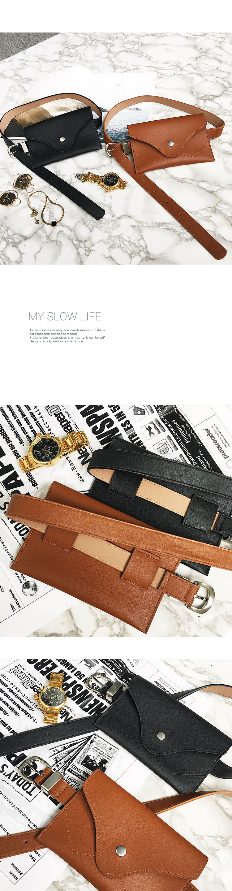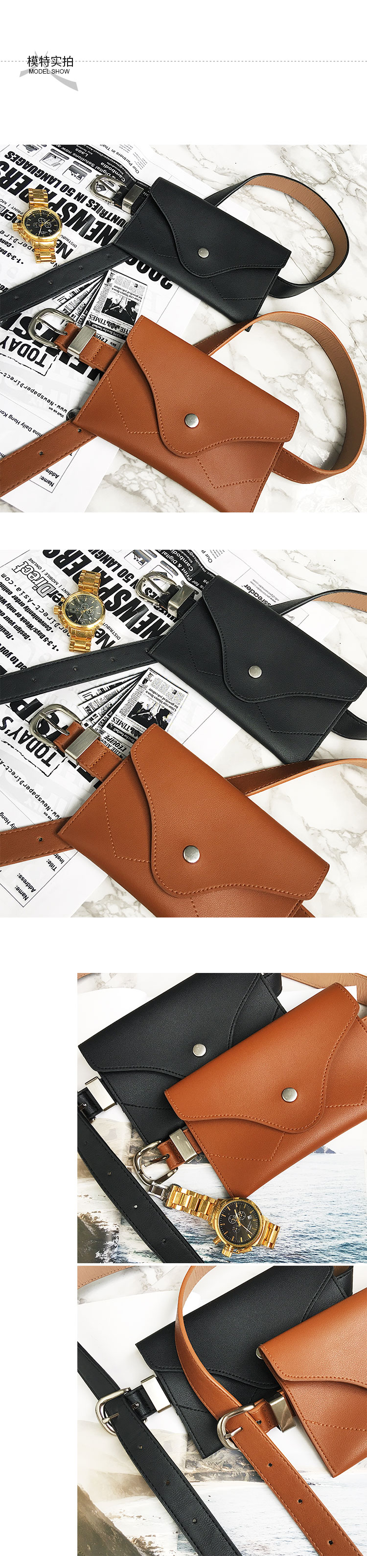2種款式可供選擇,一種磨砂皮(101cm),一種光滑皮(300cm)腰帶和腰包可拆卸,個人建議配上腰包,特別好看~
