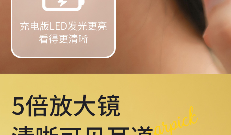 這個真方便了,挖耳勺頭也軟硬適中。耳道看的一清二楚