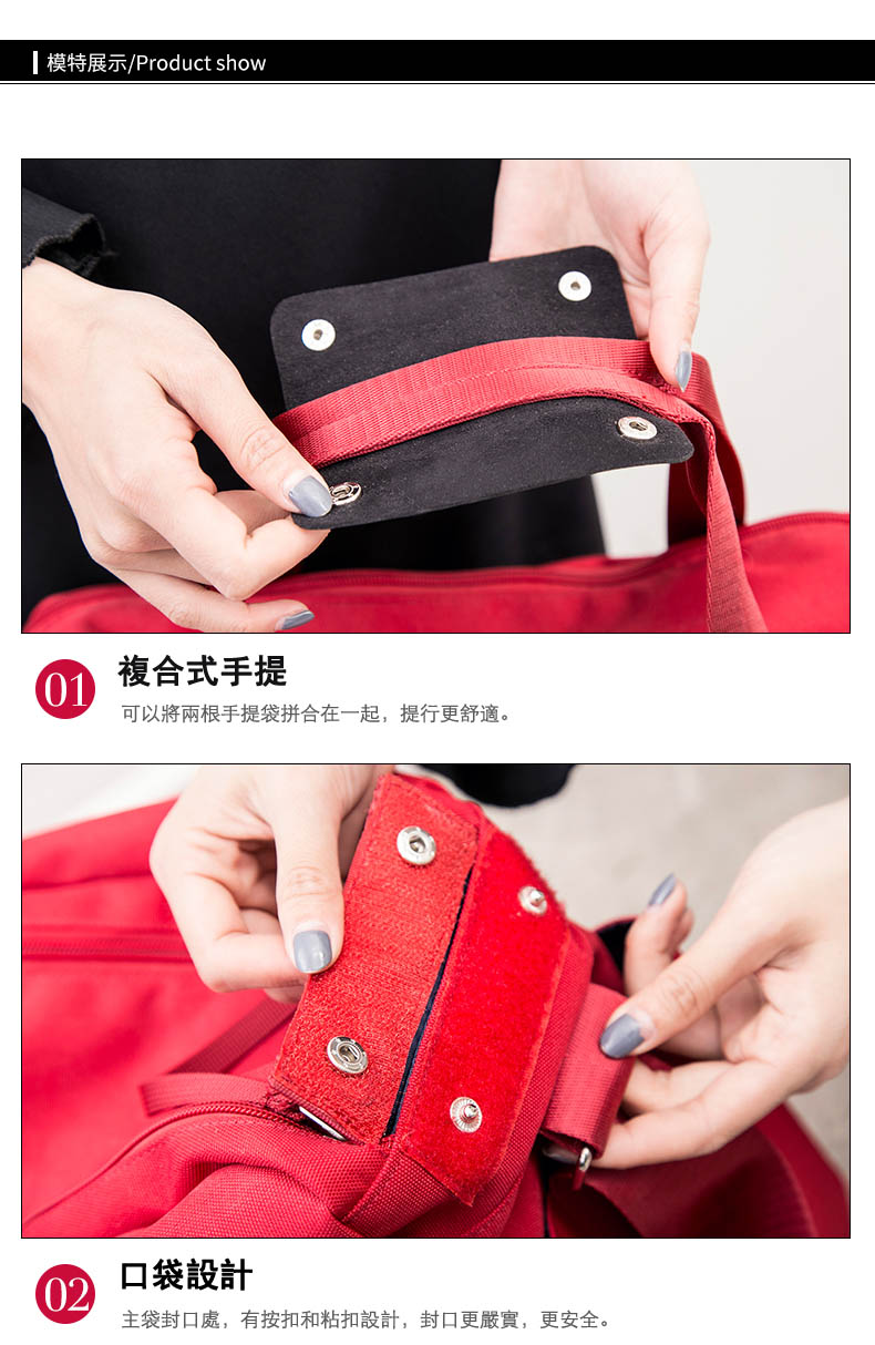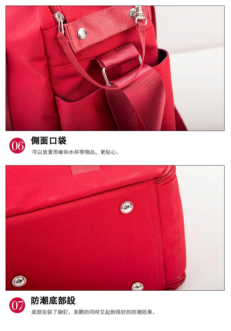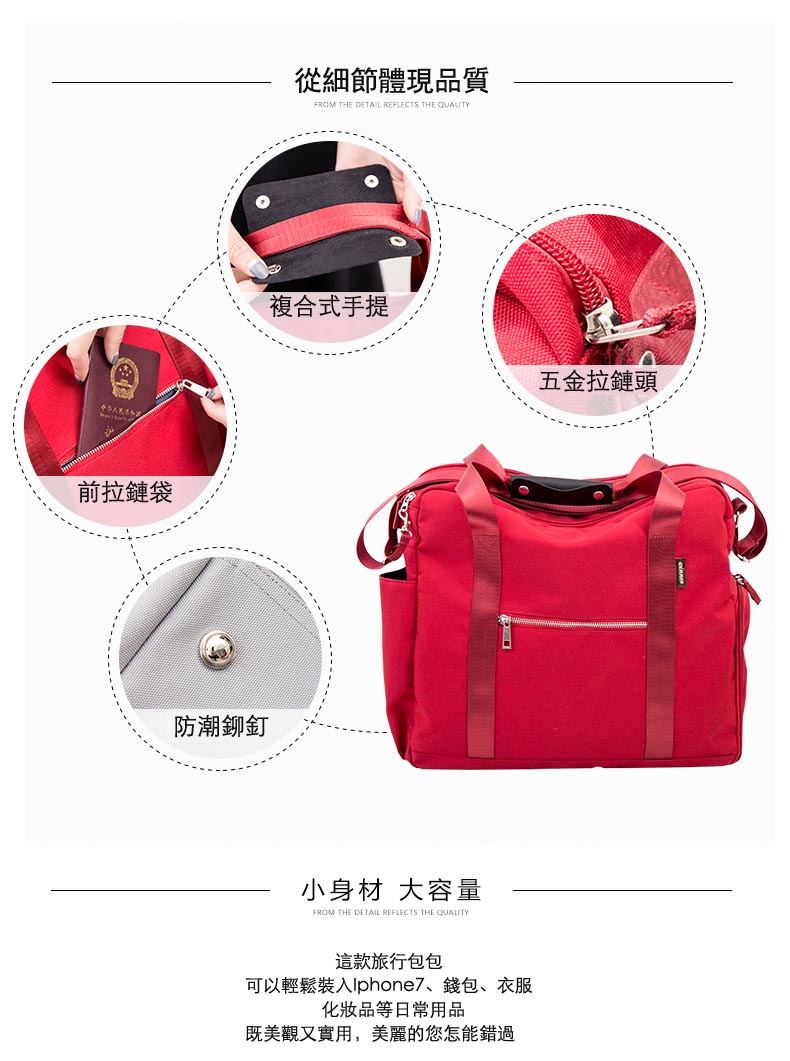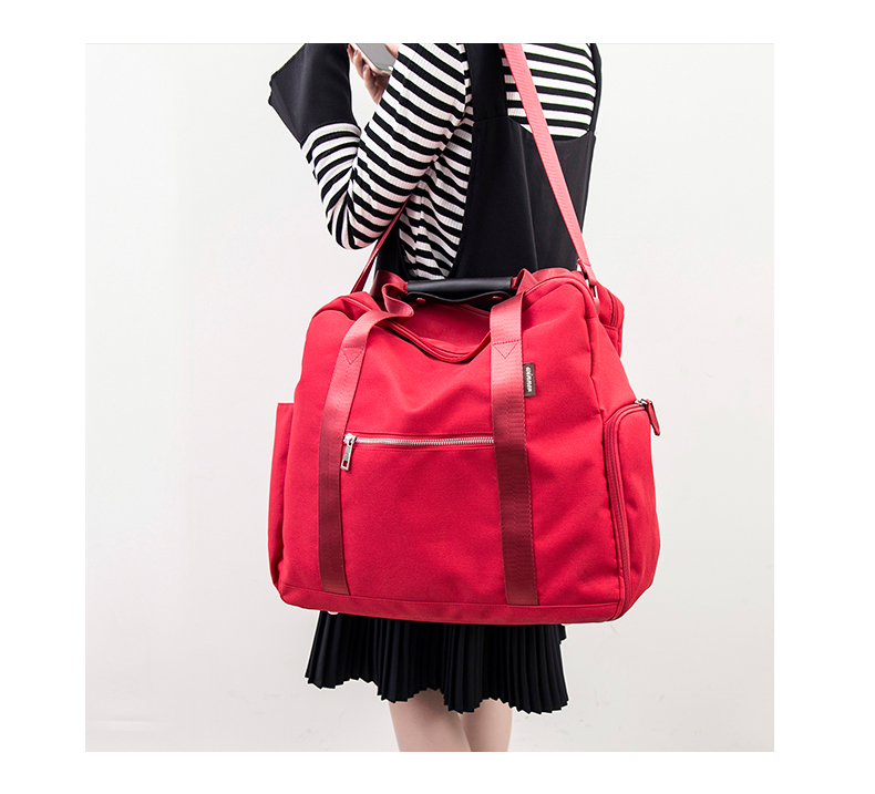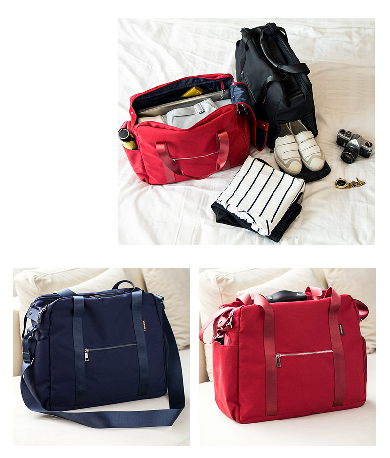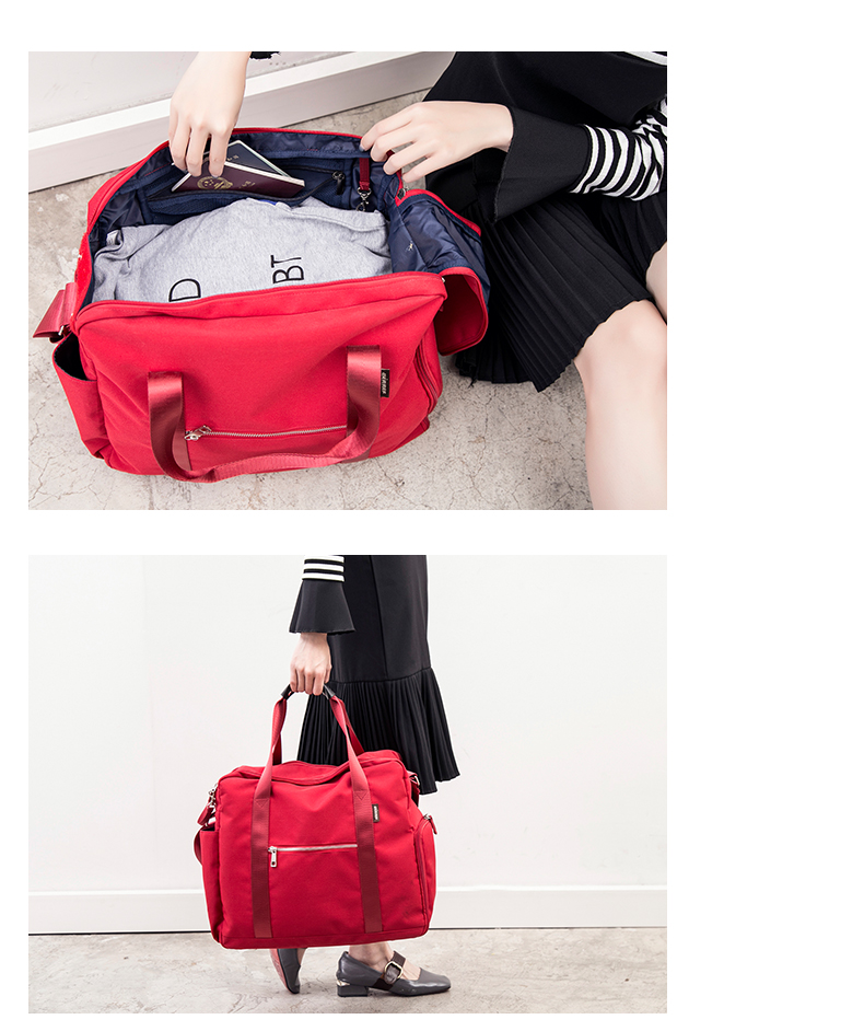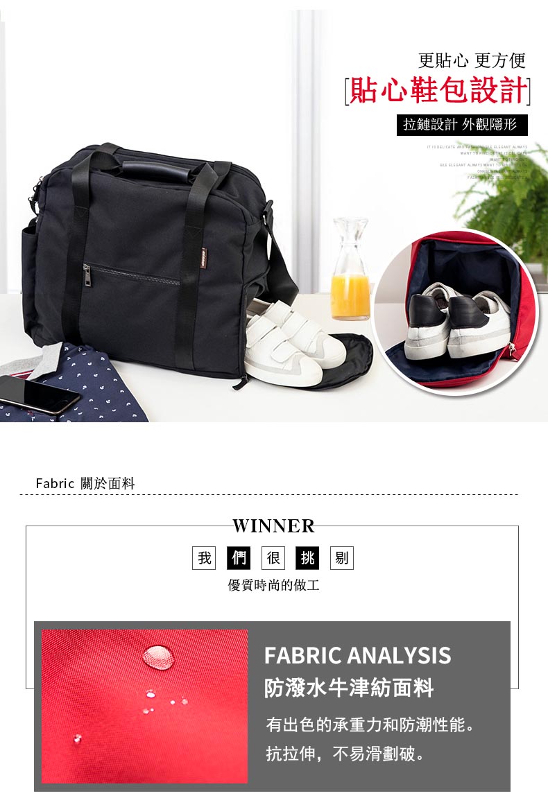 面料非常厚實,顏色很漂亮,然後容積也比較大,下麵有一個可以單獨放鞋子的口袋從側面放鞋子,和你的衣物可以完全隔離開來,非常實用。