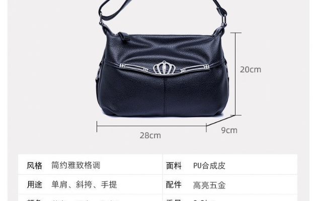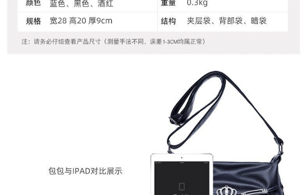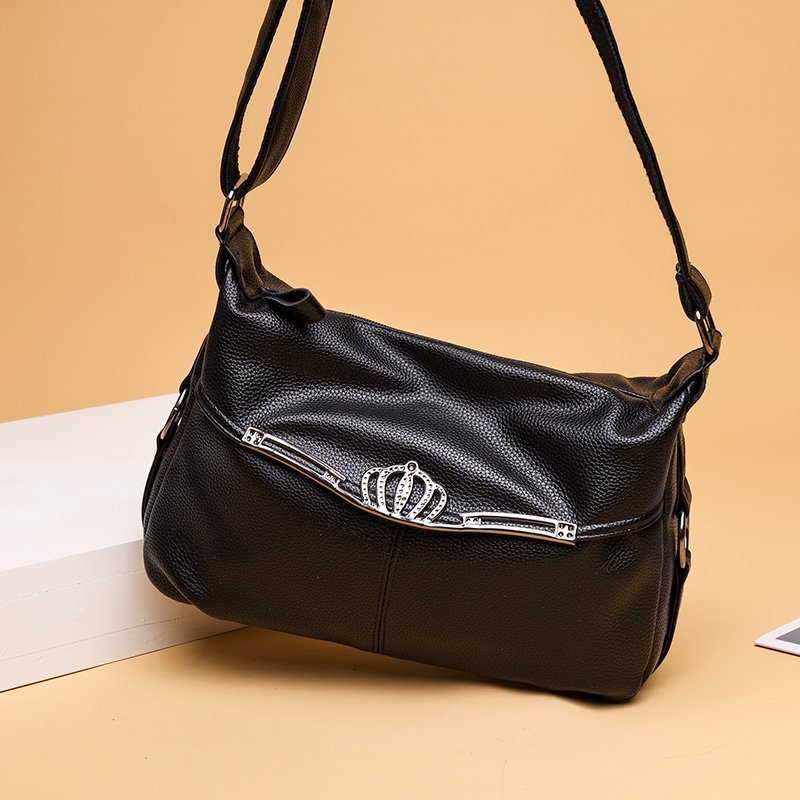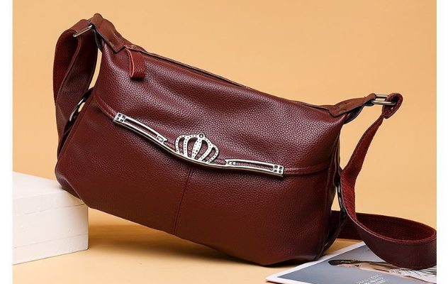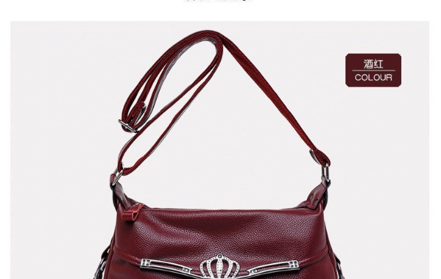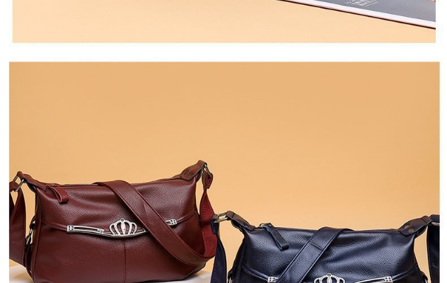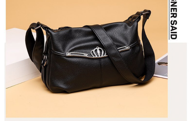 軟皮皇冠大容量斜挎包,皮質柔軟,做工細致,款式簡潔大方
