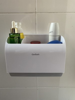 洗漱小件也都可以放。設計很簡約,實用又好看,黏貼的膠很大一片,安裝簡單,看起來很牢固,不錯。